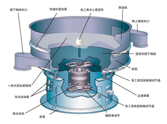 3.篩網不阻塞、粉末不飛揚、篩分可達500目(28微米)過濾可達5微米。