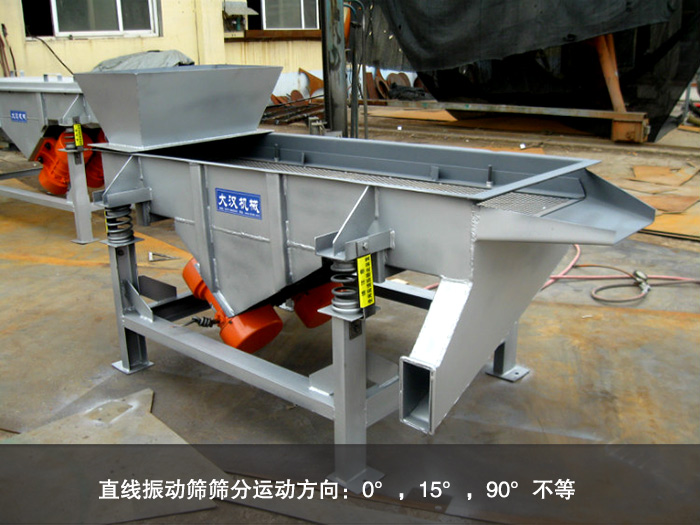 直線振動篩為了保障其物料的篩分效果,所以會有不同形式的篩分運(yùn)動方向:0°,15°,90°不等。每個(gè)運(yùn)動方向會有不同的作用,0°可以用于一般的篩分,15°可用于精密篩分,用于微分高凝聚力的原料或含水率高的原料分級,90°則是除去原料中的異物,用于濕法分級。
